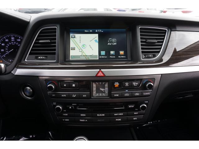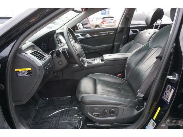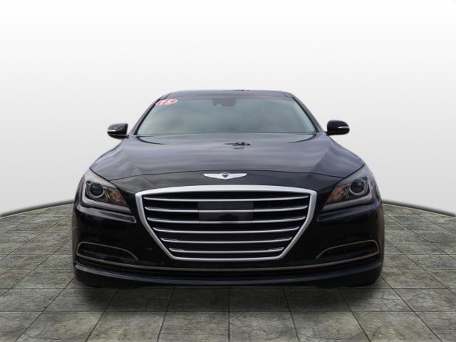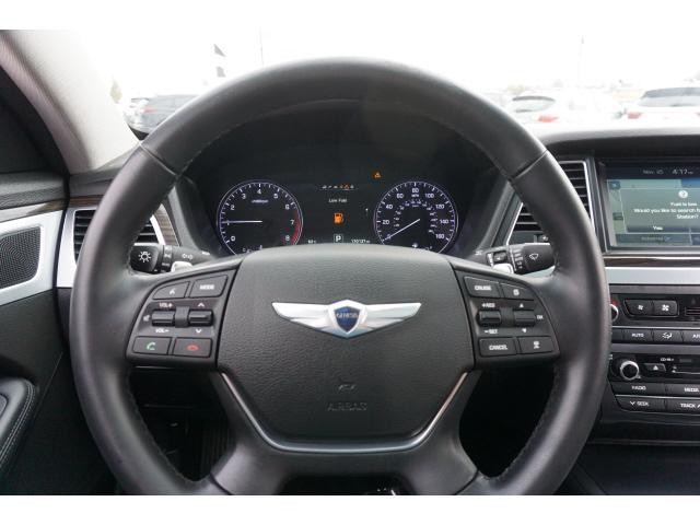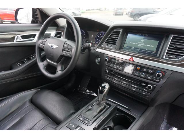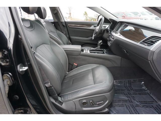 CARFAX One-Owner. Clean CARFAX. Caspian Black 2015 Hyundai Genesis 3.8 Ultimate RWD 8-Speed Automatic with SHIFTRONIC 3.8L V6 DGI DOHC Dual CVVTHomer Skelton is committed to meeting your automotive needs with speed flexibility and friendly customer service. 18/29 City/Highway MPGOption Group 03 Signature Package 02 (Power Heated/Cooled Front Bucket Seats Power Tilt-and-Slide Panoramic Sunroof Auto-Dimming Outside Mirrors Blind Spot Detection System HID Headlights w/Auto-Leveling Integrated Memory System (IMS) Parking Guidelines Power Rear Sunshade Power Tilt-and-Telescopic Steering Wheel and Radio: AM/FM/HD/SiriusXM/CD/DVD/MP3 Audio System) Technology Package 03 (7"" TFT LCD Cluster Display Automatic Emergency Braking (AEB) Electronic Parking Brake w/Automatic Vehicle Hold Front & Rear Parking Assistance System Haptic Feedback Steering Wheel High Beam Assist Lane Departure Warning System (LDWS) Lane Keep Assist Power Heated & Cooled Front Bucket Seats Pre-Safe ty Seatbelt Smart Cruise Control and Ultra-Premium Leather Seating Surfaces) Navigation System 4-Wheel Disc Brakes 7 Speakers ABS brakes Air Conditioning Alloy wheels AM/FM radio: SiriusXM Anti-whiplash front head restraints Auto-dimming Rear-View mirror Automatic temperature control Bodyside moldings Brake assist Bumpers: body-color CD player Compass Delay-off headlights Driver door bin Driver vanity mirror Dual front impact airbags Dual front side impact airbags Electronic Stability Control Exterior Parking Camera Rear Four wheel independent suspension Front anti-roll bar Front Bucket Seats Front Center Armrest w/Storage Front dual zone A/C Front reading lights Fully automatic headlights Garage door transmitter: HomeLink Heated door mirrors Heated front seats Illuminated entry Knee airbag Leather Seating Surfaces Leather steering wheel Low tire pressure warning Occupant sensing airbag Option Group 02 Outside temperature display Overhead airbag Overhead console Panic alarm Passenger door bin Passenger vanity mirror Power door mirrors Power driver seat Power Heated Front Bucket Seats Power passenger seat Power steering Power windows Radio: AM/FM/SiriusXM/HD/CD/MP3 Audio System Rain sensing wipers Rear anti-roll bar Rear Bumper Applique Rear reading lights Rear seat center armrest Rear side impact airbag Rear window defroster Remote keyless entry Reversible Cargo Tray Security system Speed control Speed-sensing steering Speed-Sensitive Wipers Steering wheel mounted audio controls Tachometer Telescoping steering wheel Tilt steering wheel Traction control Trip computer Turn signal indicator mirrors Variably intermittent wipers Wheel Locks and Wheels: 18 x 8.0J Machine Finished Aluminum Alloy.
