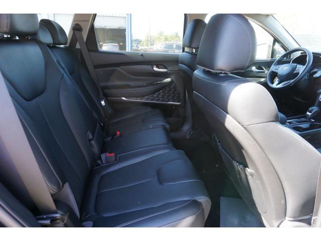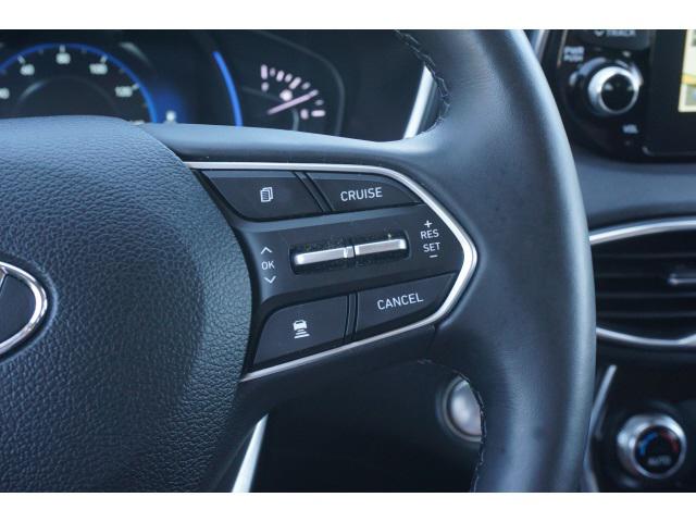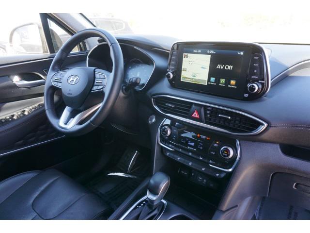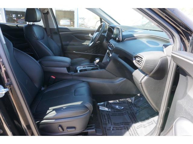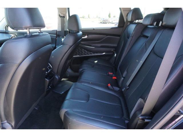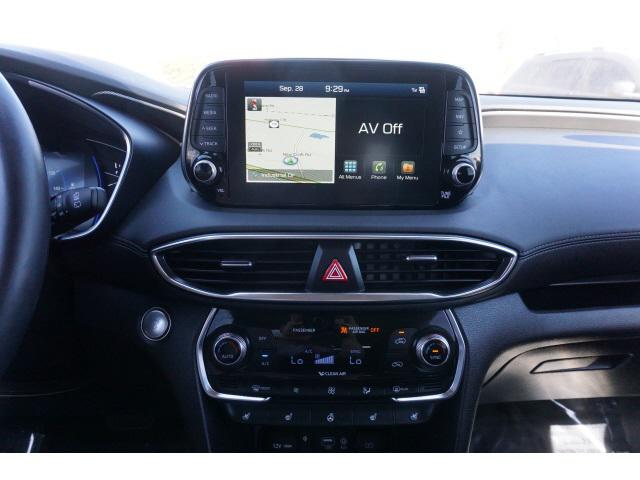 CARFAX One-Owner. Clean CARFAX. Certified. Twilight Black 2019 Hyundai Santa Fe Ultimate 2.0 AWD 8-Speed Automatic with SHIFTRONIC 2.5L I4 DGI Turbocharged DOHC 16V ULEV II 235hpHomer Skelton is committed to meeting your automotive needs with speed flexibility and friendly customer service. Odometer is 10781 miles below market average!Hyundai Certified Pre-Owned Details: * Includes 10-year/Unlimited mileage Roadside Assistance with Rental Car and Trip Interruption Reimbursement; Please see dealers for specific vehicle eligibility requirements. 10-Year/100 000 Mile Hybrid/EV Battery Warranty. 3 months Siru-iusXM trial subscription * Limited Warranty: 60 Month/60 000 Mile (whichever comes first) from original in-service date * Roadside Assistance * 173+ Point Inspection * Powertrain Limited Warranty: 120 Month/100 000 Mile (whichever comes first) from original in-service date * Vehicle History * Warranty Deductible: $50Hyundai Certified Pre-Owned Certified AWD Black Leather AM/FM radio: SiriusXM Apple CarPlay & Android Auto Heads-Up Display Heated & Ventilated Front Bucket Seats Memory seat Navigation System Power Liftgate Power moonroof Remote keyless entry 12 Speakers 4-Wheel Disc Brakes ABS brakes Air Conditioning Alloy wheels Auto High-beam Headlights Auto-dimming Rear-View mirror Automatic temperature control Axle Ratio 3.510 Brake assist Bumper Applique Bumpers: body-color Cargo Net Carpeted Floor Mats Compass Delay-off headlights Driver door bin Driver vanity mirror Dual front impact airbags Dual front side impact airbags Electronic Stability Control Emergency communication system: Blue Link Exterior Parking Camera Rear Four wheel independent suspension Front anti-roll bar Front Bucket Seats Front Center Armrest Front dual zone A/C Front fog lights Front reading lights Fully automatic headlights Garage door transmitter: HomeLink Heated door mirrors Heated front seats Heated rear seats Heated steering wheel Illuminated entry Leather Seating Surface Leather Shift Knob Leather steering wheel Low tire pressure warning Occupant sensing airbag Outside temperature display Overhead airbag Overhead console Panic alarm Passenger door bin Passenger vanity mirror Power door mirrors Power driver seat Power passenger seat Power steering Power windows Radio: Infinity Premium AM/FM/MP3 Display Audio Rain sensing wipers Rear anti-roll bar Rear Parking Sensors Rear seat center armrest Rear window defroster Rear window wiper Roof rack: rails only Security system Speed control Speed-sensing steering Split folding rear seat Spoiler Steering wheel mounted audio controls Sun blinds Tachometer Telescoping steering wheel Tilt steering wheel Traction control Trip computer Turn signal indicator mirrors Variably intermittent wipers Ventilated front seats Wheel Locks and Wheels: 19"" x 7.5J Alloy.