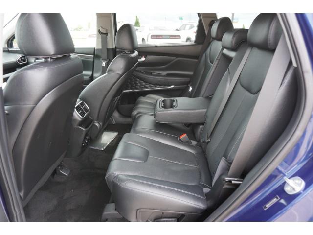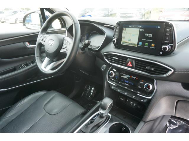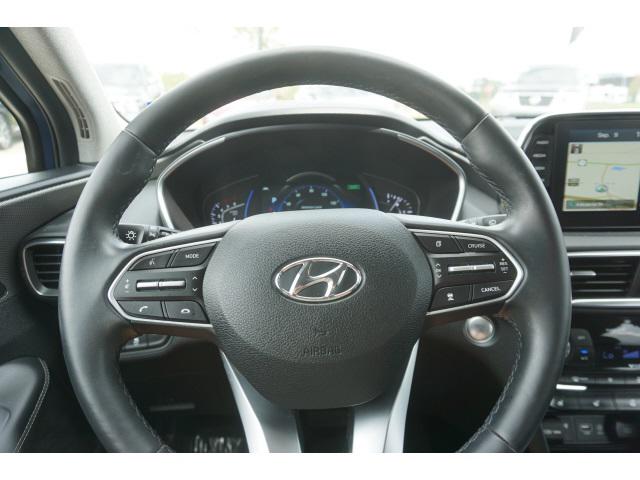 CARFAX One-Owner. Clean CARFAX. Certified. Stormy Sea 2020 Hyundai Santa Fe Limited 2.0T FWD 8-Speed Automatic with SHIFTRONIC 2.0L TurbochargedHomer Skelton is committed to meeting your automotive needs with speed flexibility and friendly customer service. 20/27 City/Highway MPGHyundai Certified Pre-Owned Details: * 173+ Point Inspection * Warranty Deductible: $50 * Powertrain Limited Warranty: 120 Month/100 000 Mile (whichever comes first) from original in-service date * Limited Warranty: 60 Month/60 000 Mile (whichever comes first) from original in-service date * Vehicle History * Roadside Assistance * Includes 10-year/Unlimited mileage Roadside Assistance with Rental Car and Trip Interruption Reimbursement; Please see dealers for specific vehicle eligibility requirements. 10-Year/100 000 Mile Hybrid/EV Battery Warranty. 3 months Siru-iusXM trial subscriptionOption Group 01 Hyundai Certified Pre-Owned Certified Black Leather Heads-Up Display Heated & Ventilated Front Bucket Seats Navigation System Power Liftgate Power moonroof 12 Speakers 4-Wheel Disc Brakes ABS brakes Air Conditioning Alloy wheels AM/FM radio: SiriusXM Apple CarPlay & Android Auto Auto High-beam Headlights Auto-dimming Rear-View mirror Automatic temperature control Axle Ratio 3.320 Brake assist Bumper Applique Bumpers: body-color Cargo Cover Cargo Net Cargo Tray Carpeted Floor Mats Compass Delay-off headlights Driver door bin Driver vanity mirror Dual front impact airbags Dual front side impact airbags Electronic Stability Control Emergency communication system: Blue Link Four wheel independent suspension Front anti-roll bar Front Bucket Seats Front Center Armrest Front dual zone A/C Front fog lights Front reading lights Fully automatic headlights Garage door transmitter: HomeLink Heated door mirrors Heated front seats Heated rear seats Heated steering wheel Illuminated entry Leather Seating Surface Leather Shift Knob Leather steering wheel Low tire pressure warning Memory seat Occupant sensing airbag Outside temperature display Overhead airbag Overhead console Panic alarm Passenger door bin Passenger vanity mirror Power door mirrors Power driver seat Power passenger seat Power steering Power windows Radio: Infinity Premium AM/FM/MP3 Display Audio Rain sensing wipers Rear anti-roll bar Rear Parking Sensors Rear seat center armrest Rear window defroster Rear window wiper Remote keyless entry Roof rack: rails only Security system Speed control Speed-sensing steering Split folding rear seat Spoiler Steering wheel mounted audio controls Sun blinds Tachometer Telescoping steering wheel Tilt steering wheel Traction control Trip computer Turn signal indicator mirrors Variably intermittent wipers Ventilated front seats and Wheels: 19"" x 7.5J Alloy.