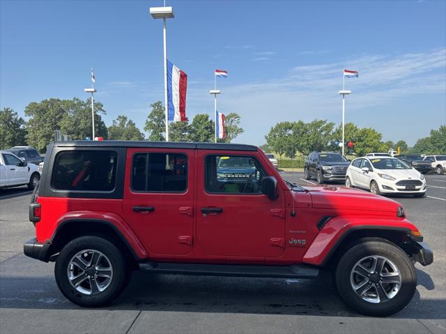 CARFAX One-Owner. Clean CARFAX. Firecracker Red Clearcoat 2021 Jeep Wrangler Unlimited Sahara 4WD 8-Speed Automatic 2.0L I4 DOHC Wrangler Unlimited Sahara 4D Sport Utility 2.0L I4 DOHC 4WD Apple CarPlay Black 3-Piece Hard Top Fully automatic headlights Hard Top No Soft Top ParkView Rear Back-Up Camera Radio: Uconnect 4 w/7"" Display Rear Window Defroster Rear Window Wiper/Washer Security system Wheels: 18"" x 7.5"" Polished w/Gray Spokes.Were confident we have the right price for you the right quality for you the right level of trust for you and the proper respect for how you want to purchase an automobile. We pride ourselves on the best and fastest way to get all the information you need to make well-informed decisions all in 30 minutes or less. Express Buying is Fast Simple Friendly and Fair. It all adds up to the right car buying experience for you. Youll simply love the way we do business. Need specific reasons to start here? Have a look at the list below: Upfront prices. Zero hassles. Homer Skelton Ford makes it easy to find the right car for you at a price you can trust. Your car's no-haggle price is the same online as it is on the lot and we will validate our pricing 100% of the time. We also offer very flexible financing options. We stand behind our cars. All of our used cars are Quality Certified and come with a free vehicle history and safety recall report 72-Hour Money-Back Guarantee and 30-Day Limited Warranty. Certain vehicles may have unrepaired safety recalls. We'll buy your car even if you don't buy ours. Our fast free appraisal process along with our partnership with Kelly Blue Books Trade-In Buying Center ensures the most money for your Trade-In. KBB will write you a check for your automobile or we will! Either cash offer is good for seven days. And we'll buy any car no matter its age or condition. Recent Arrival!