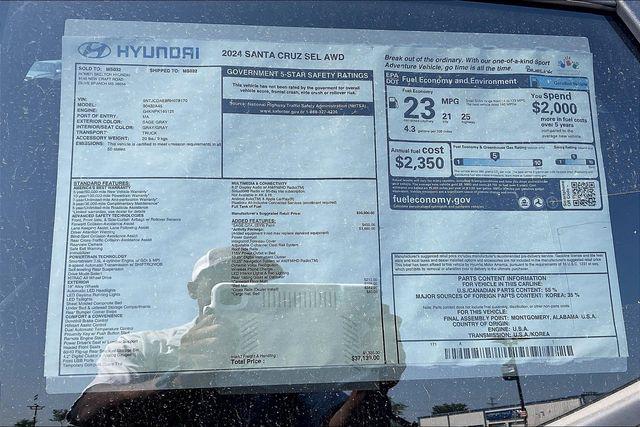 Sage Gray 2024 Hyundai Santa Cruz SEL AWD 8-Speed Automatic with SHIFTRONIC 2.5L I4At Homer Skelton Hyundai we are dedicated to providing exceptional service and a great car-buying experience. With our extensive selection of Hyundai vehicles you'll find the perfect vehicle to meet your lifestyle and budget. Our knowledgeable and friendly team is here to assist you every step of the way ensuring that you make an informed decision. We value transparency integrity and building long-lasting relationships with our customers. Visit us today and discover why Homer Skelton Hyundai stands out from the rest.